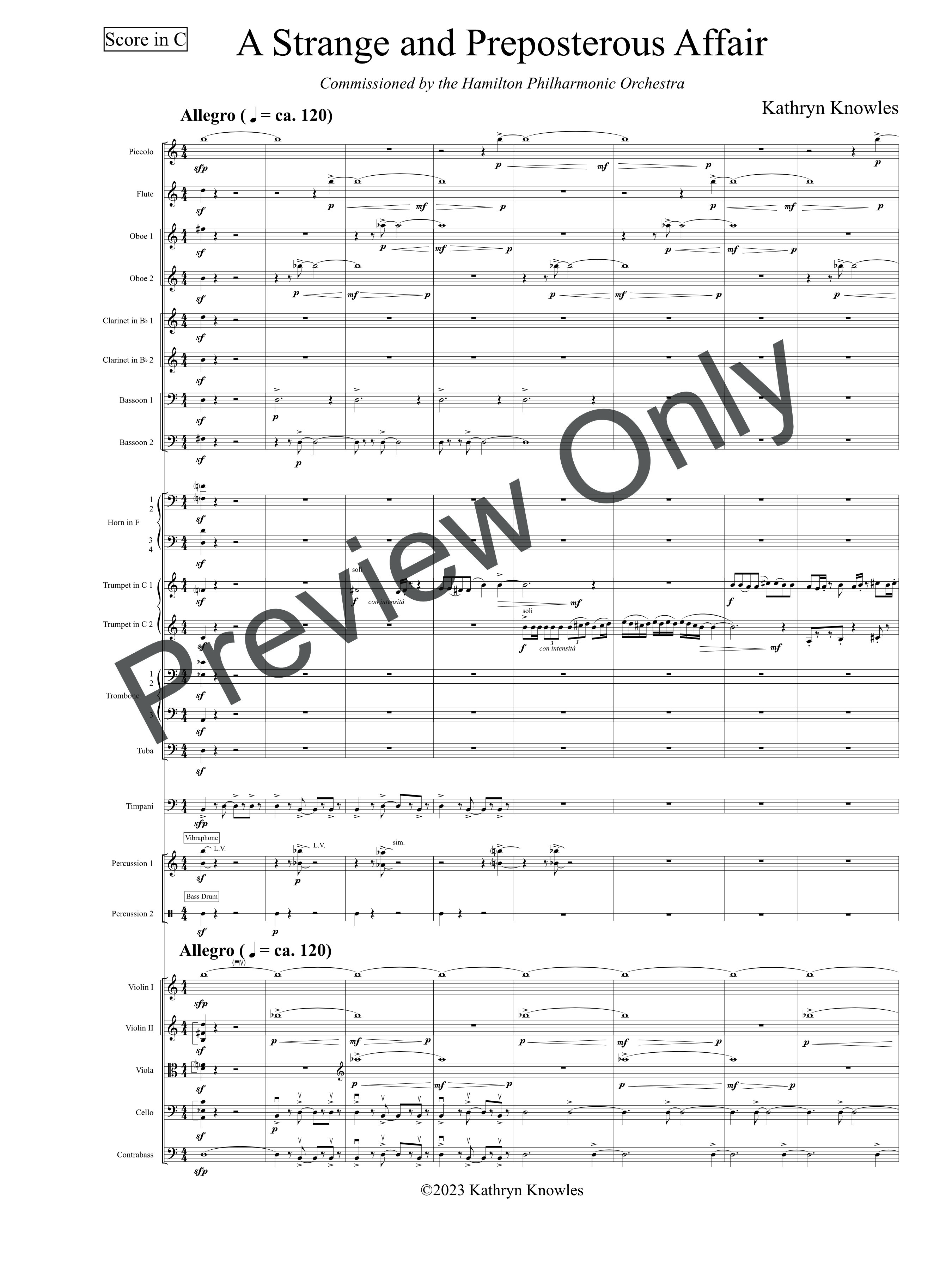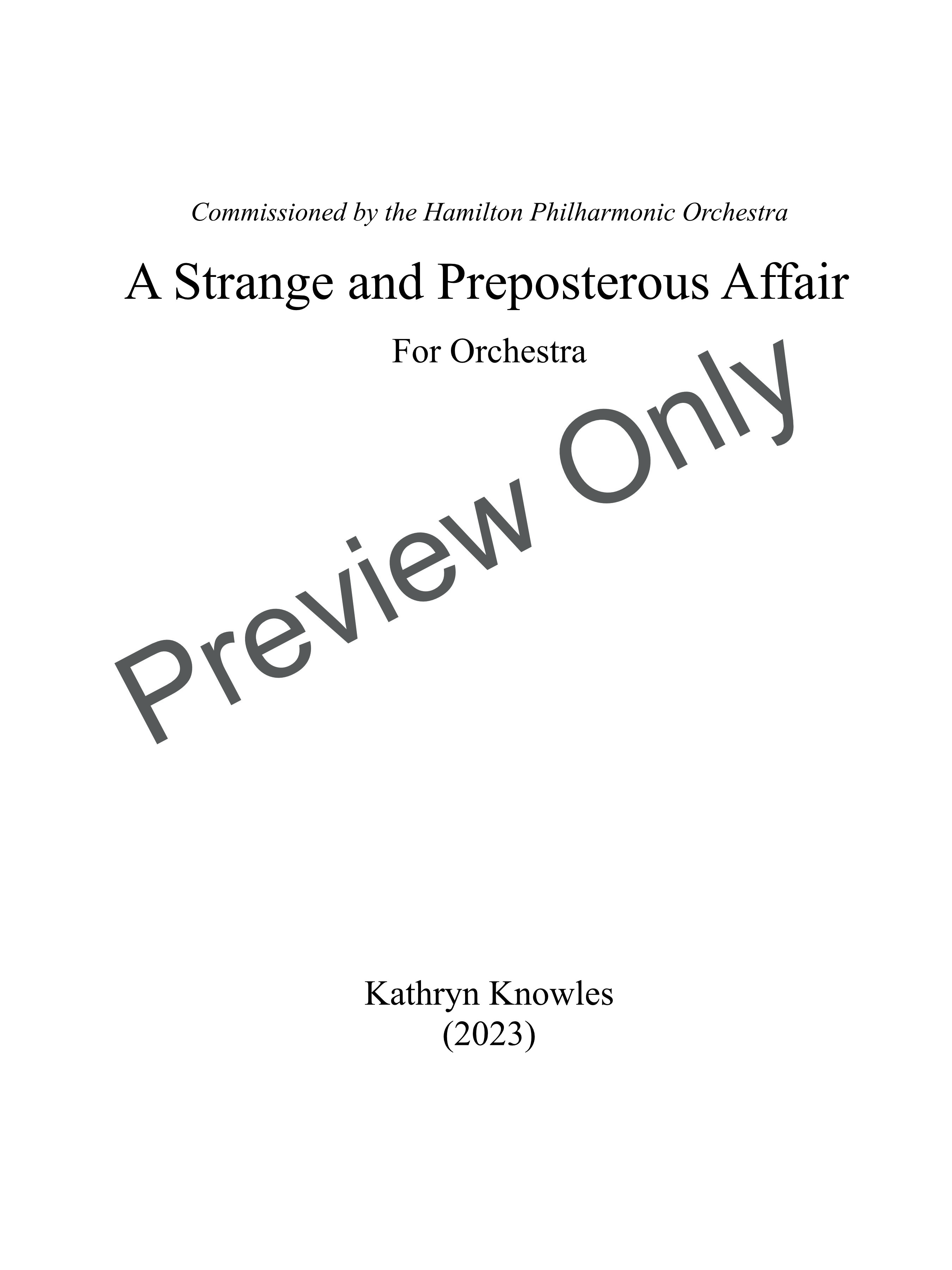 Commissioned by the Hamilton Philharmonic Orchestra, A Strange and Preposterous Affair is a tribute to the great, and sometimes difficult, changes we experience in life. It is inspired by the composer’s recent experience grappling with personal change and feeling her identity evolve into something new. She sees this piece as a moment of reflection — a commentary on the experience where she could embrace and celebrate the confusion and chaos of the process, ultimately recognizing the conflicting absurdity and triumph of life’s little evolutions.